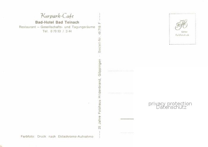 72692777 Bad Teinach-Zavelstein Kurpark Cafe Badhotel Restaurant Tagungsraeume postalisch nicht gelaufen Erhaltung siehe scans [FriedD77] KatCode: 11110008235084