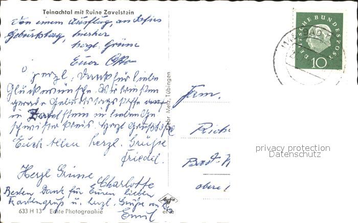 72444930 alte Postkarte Bad Teinach-Zavelstein mit Ruine Zavelstein postalisch gelaufen Erhaltung siehe scans KatCode: 11110008235084