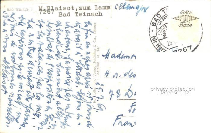 72028547 alte Postkarte Bad Teinach-Zavelstein Ortsansicht postalisch gelaufen Erhaltung siehe scans KatCode: 11110008235084