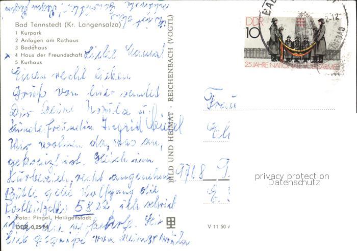 72335113 alte Postkarte Bad Tennstedt Kurpark Rathaus Badehaus Haus der Freundschaft Kurhaus postalisch gelaufen Erhaltung siehe scans KatCode: 11110016064004