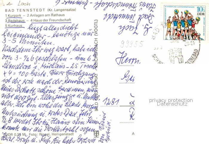 72894987 alte Postkarte Bad Tennstedt Kurpark Rathaus Badehaus Haus der Freundschaft postalisch gelaufen Erhaltung siehe scans [KathaD81] KatCode: 11110016064004