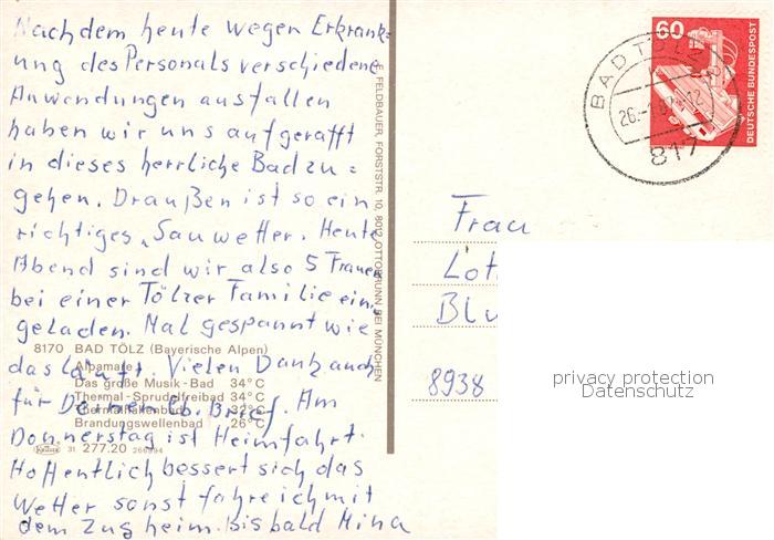 73836444 alte Postkarte Bad Toelz Alpamare Thermal Sprudelbad Hallenbad Brandungswellenbad postalisch gelaufen Erhaltung siehe scans [FriedD77] KatCode: 11110009173112