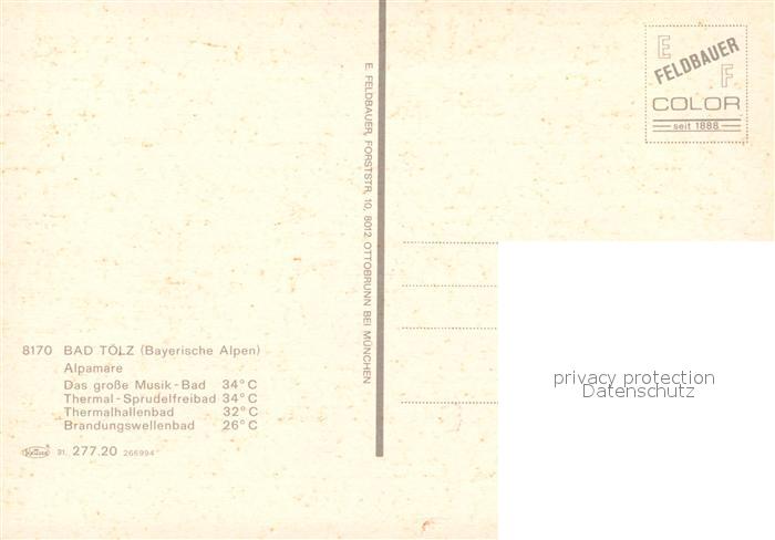73125091 Bad Toelz Alpamare postalisch nicht gelaufen Erhaltung siehe scans [PaolaD17] KatCode: 11110009173112