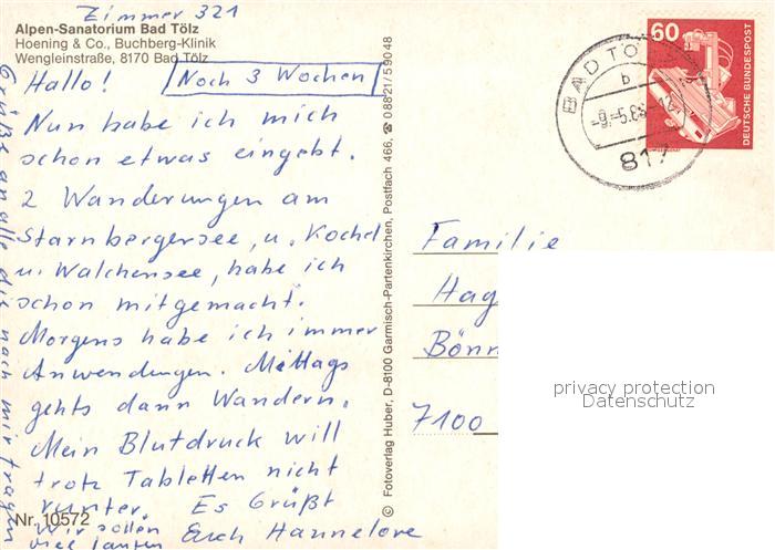73108144 alte Postkarte Bad Toelz Alpen-Sanatorium Hoening Buchberg-Klinik postalisch gelaufen Erhaltung siehe scans [NatalD47] KatCode: 11110009173112