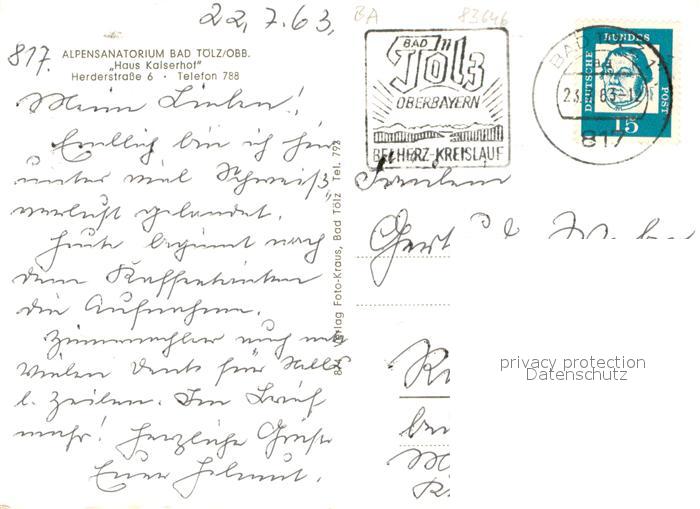 73648566 alte Postkarte Bad Toelz Alpensanatorium Bad Toelz Haus Kaiserhof postalisch gelaufen Erhaltung siehe scans [WerneD78] KatCode: 11110009173112