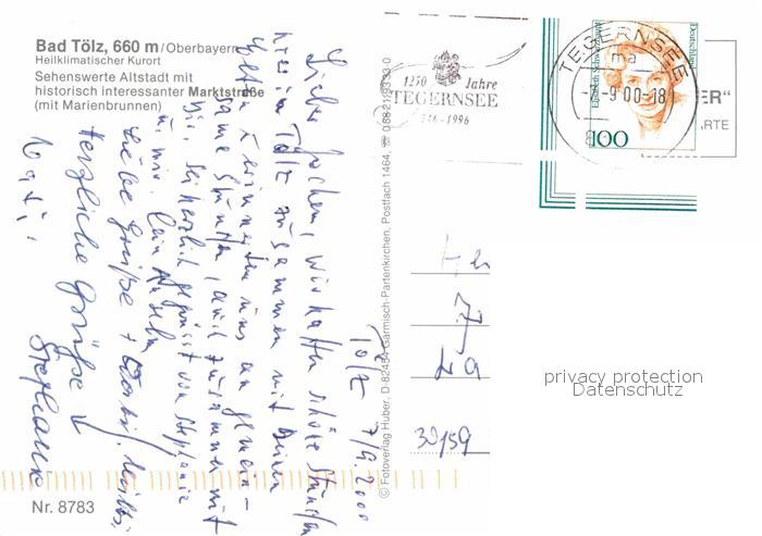72711831 alte Postkarte Bad Toelz Alstadt Marktstrasse Marienbrunnen postalisch gelaufen Erhaltung siehe scans [LiesaD40] KatCode: 11110009173112