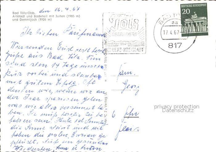 72429530 alte Postkarte Bad Toelz Altstadt Badeteil mit Juiten Demmljoch postalisch gelaufen Erhaltung siehe scans KatCode: 11110009173112