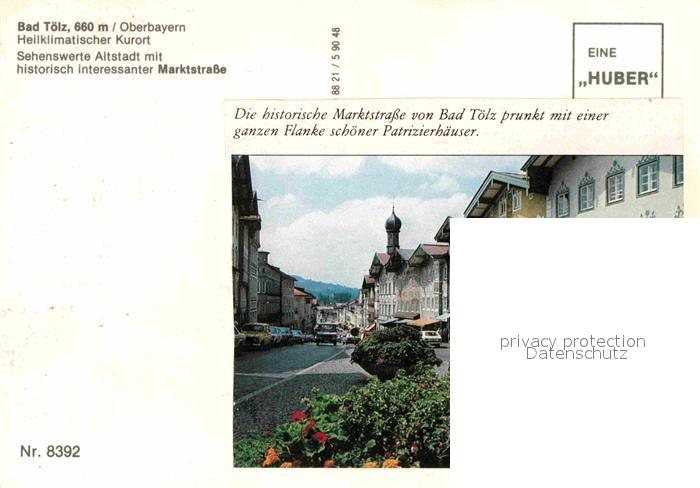 72865488 Bad Toelz Altstadt Historische Marktstrasse Huber Karte Nr 8392 postalisch nicht gelaufen Erhaltung siehe scans [FriedD77] KatCode: 11110009173112