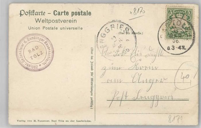 40206995 Bad Toelz arienstift x 1906 KatCode 11110009173112