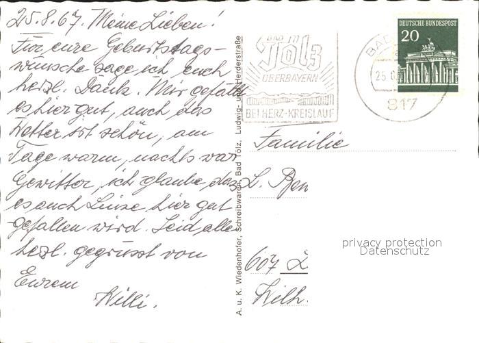 71942059 alte Postkarte Bad Toelz aus der Vogelperspektive Benediktenwand Alpenpanorama postalisch gelaufen Reliefkarte Erhaltung siehe scans KatCode: 11110009173112