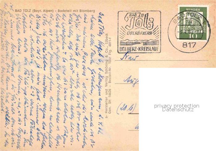72713503 alte Postkarte Bad Toelz Badeteil mit Blomberg Fliegeraufnahme postalisch gelaufen Erhaltung siehe scans [FriedD77] KatCode: 11110009173112