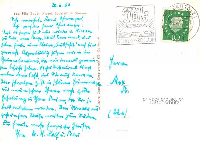 72846136 alte Postkarte Bad Toelz Badeteil mit Stausee Fliegeraufnahme postalisch gelaufen Erhaltung siehe scans [FriedD77] KatCode: 11110009173112