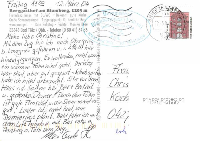72752430 alte Postkarte Bad Toelz Berggasthof am Blomberg Winterpanorama Alpen postalisch gelaufen Erhaltung siehe scans [FriedD77] KatCode: 11110009173112