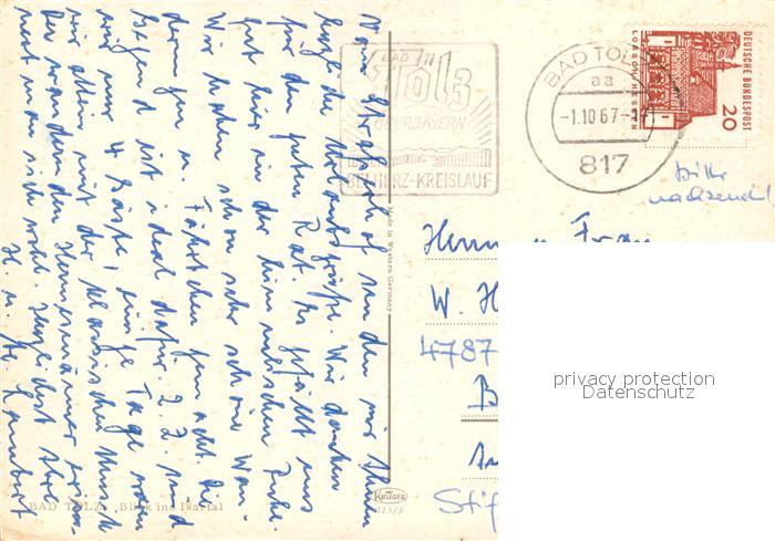 73249157 alte Postkarte Bad Toelz Blick ins Isartal Alpenpanorama Fliegeraufnahme postalisch gelaufen Erhaltung siehe scans [FriedD77] KatCode: 11110009173112