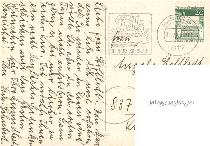 73163425 alte Postkarte Bad Toelz Blick ins Isartal Fliegeraufnahme postalisch gelaufen Erhaltung siehe scans [WerneD78] KatCode: 11110009173112
