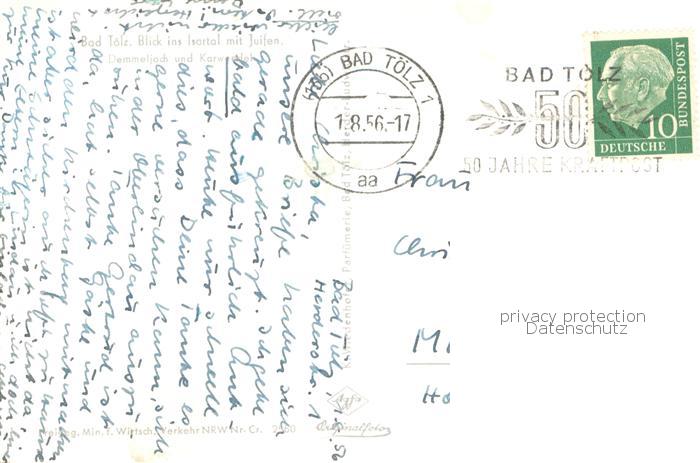 73764840 alte Postkarte Bad Toelz Blick ins Isartal mit Juifen Demmeljoch Karwendel postalisch gelaufen Fliegeraufnahme Erhaltung siehe scans [FriedD77] KatCode: 11110009173112