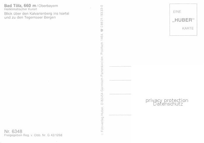 72908017 Bad Toelz Blick ueber den Kalvarienberg ins Isartal Tegernseer Bergen Fliegeraufnahme Huber Karte Nr 6348 postalisch nicht gelaufen Erhaltung siehe scans [FriedD77] KatCode: 11110009173112