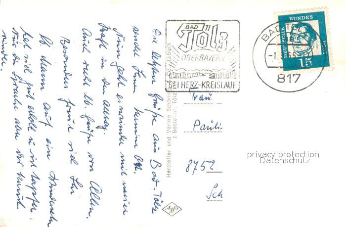 73747466 alte Postkarte Bad Toelz Blick vom Kalvarienberg mit Tiroler Alpen postalisch gelaufen Erhaltung siehe scans [WerneD78] KatCode: 11110009173112