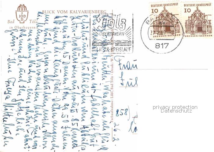 72705714 alte Postkarte Bad Toelz Blick vom Kalvarienberg postalisch gelaufen Erhaltung siehe scans [AndreD76] KatCode: 11110009173112