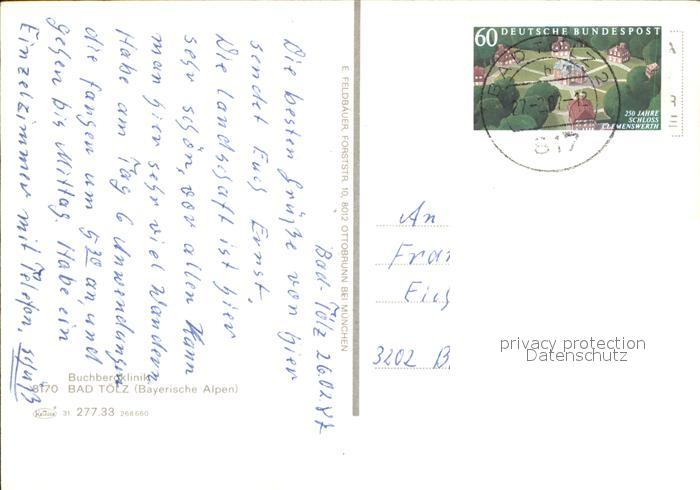 72539203 alte Postkarte Bad Toelz Buchbergklinik postalisch gelaufen Erhaltung siehe scans [AndreD76 kt119box] KatCode: 11110009173112