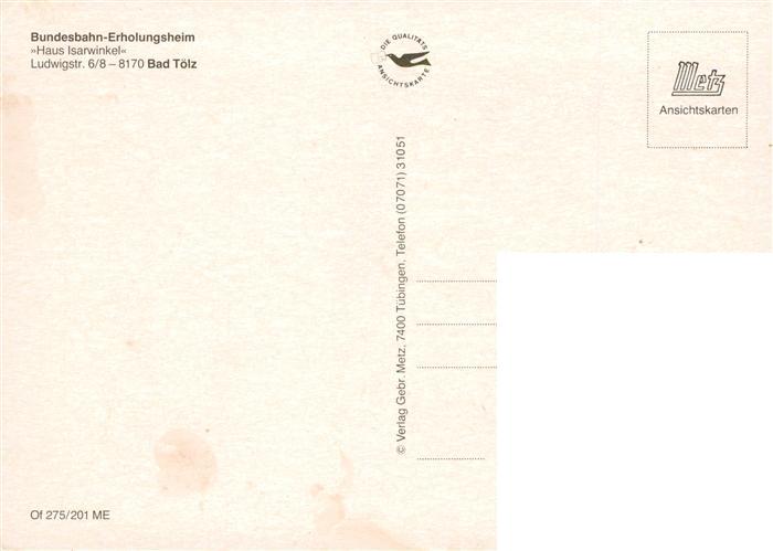 73878964 Bad Toelz Bundesbahn Erholungsheim Haus Isarwinkel postalisch nicht gelaufen Erhaltung siehe scans [WerneD78] KatCode: 11110009173112