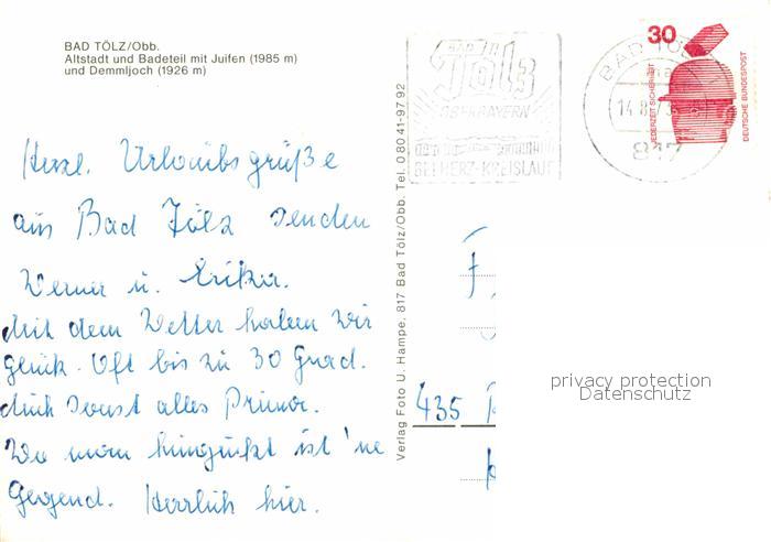 72656825 alte Postkarte Bad Toelz Demmljoch postalisch gelaufen Erhaltung siehe scans [AndreD76] KatCode: 11110009173112