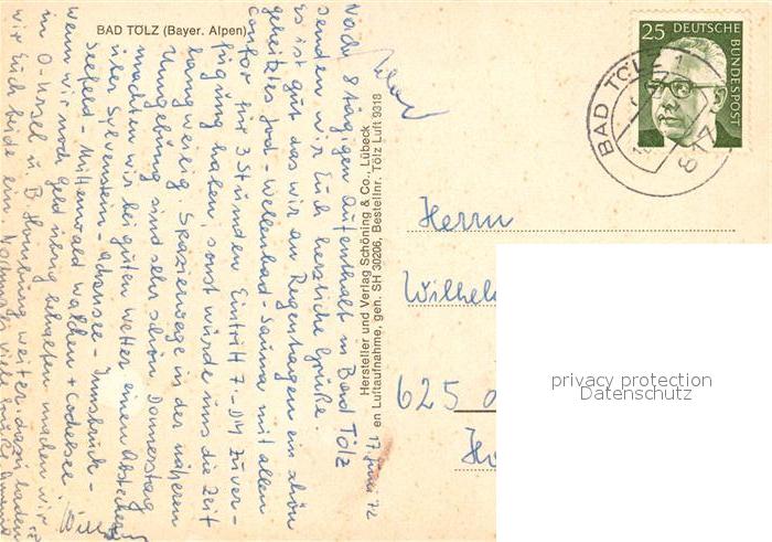 73196681 alte Postkarte Bad Toelz Fliegeraufnahme postalisch gelaufen Erhaltung siehe scans [NatalD47] KatCode: 11110009173112