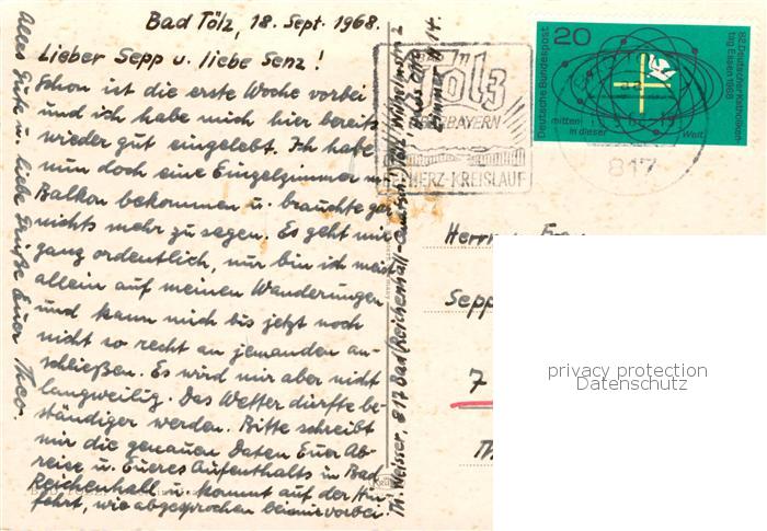 73829811 alte Postkarte Bad Toelz Fliegeraufnahme postalisch gelaufen Erhaltung siehe scans [WerneD78] KatCode: 11110009173112