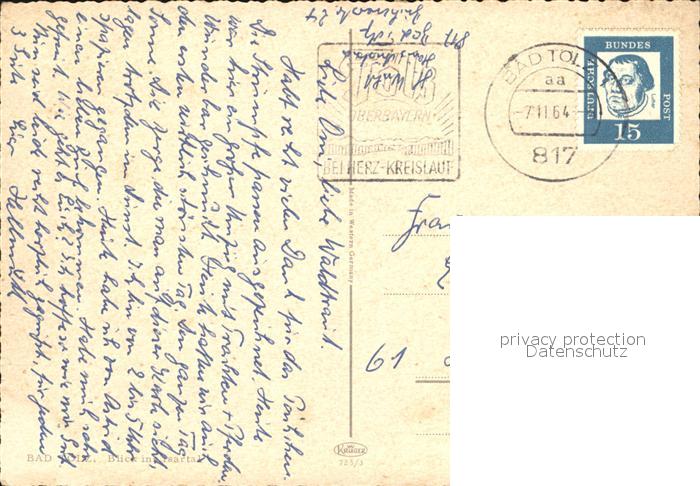 72444314 alte Postkarte Bad Toelz Fliegeraufnahme postalisch gelaufen Erhaltung siehe scans KatCode: 11110009173112