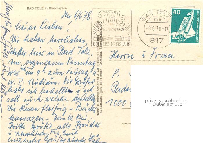 73720405 alte Postkarte Bad Toelz Fliegeraufnahme Gesamtansicht postalisch gelaufen Erhaltung siehe scans [LiesaD40] KatCode: 11110009173112