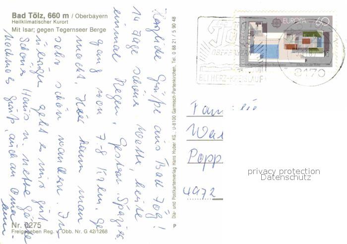 72773721 alte Postkarte Bad Toelz Fliegeraufnahme Isar Tegernseer Berge postalisch gelaufen Erhaltung siehe scans [AndreD76] KatCode: 11110009173112