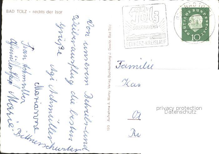 72299229 alte Postkarte Bad Toelz Fliegeraufnahme Isarpartie postalisch gelaufen Erhaltung siehe scans KatCode: 11110009173112