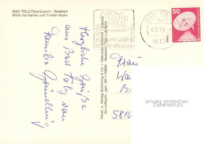73616739 alte Postkarte Bad Toelz Fliegeraufnahme Isartal und Tiroler Alpen postalisch gelaufen Erhaltung siehe scans [WerneD78] KatCode: 11110009173112