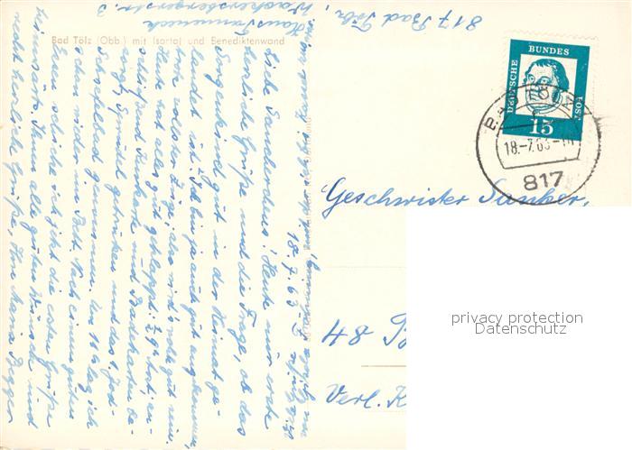 73647390 alte Postkarte Bad Toelz Fliegeraufnahme mit Isartal und Benediktenwand postalisch gelaufen Erhaltung siehe scans [WerneD78] KatCode: 11110009173112