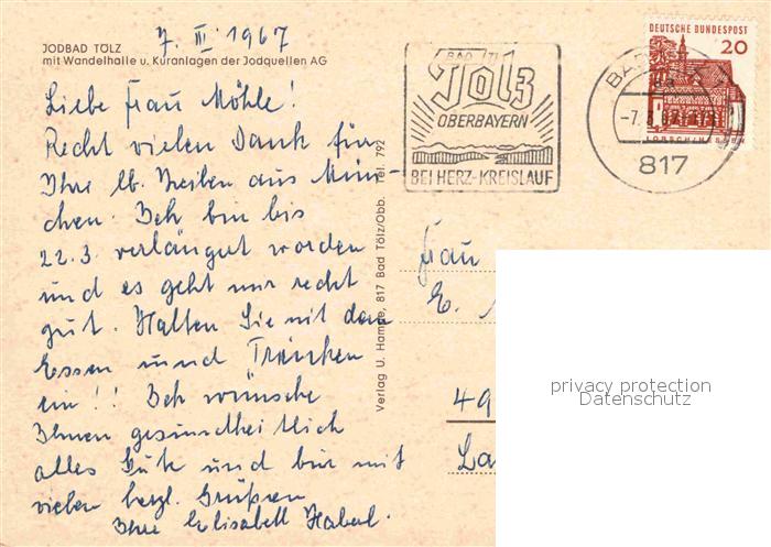 72856783 alte Postkarte Bad Toelz Fliegeraufnahme Wandelhalle Ortspartie postalisch gelaufen Erhaltung siehe scans [LiesaD40] KatCode: 11110009173112