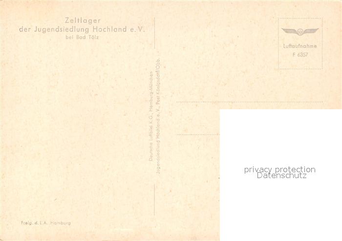 73107402 Bad Toelz Fliegeraufnahme Zeltlager Jugendsiedlung Hochland postalisch nicht gelaufen Erhaltung siehe scans [NatalD47] KatCode: 11110009173112