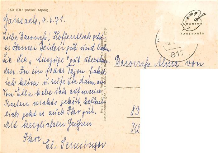 73880613 alte Postkarte Bad Toelz Fliegeraufnahme postalisch gelaufen Erhaltung siehe scans [WerneD78] KatCode: 11110009173112