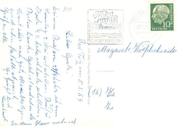 73887268 alte Postkarte Bad Toelz Fremdenheim Hildegard Wild postalisch gelaufen Erhaltung siehe scans [FriedD77] KatCode: 11110009173112