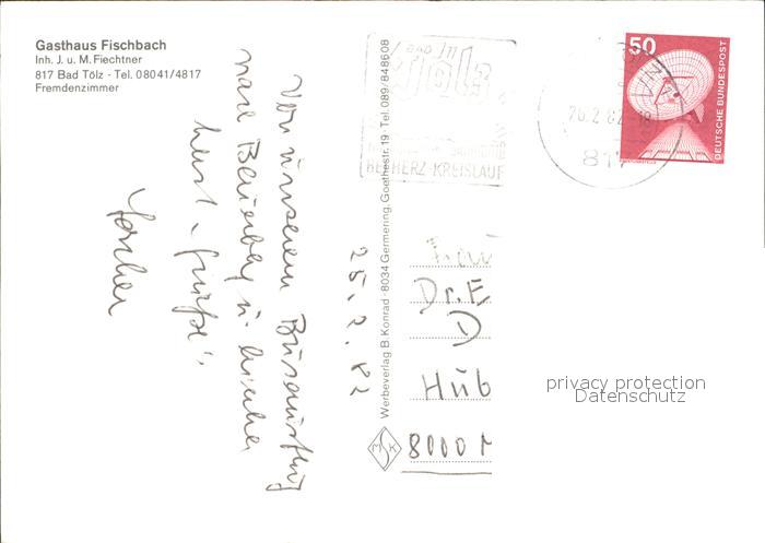 72137173 alte Postkarte Bad Toelz Gasthaus Fischbach postalisch gelaufen Erhaltung siehe scans KatCode: 11110009173112