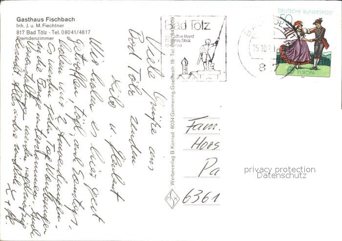 72514815 alte Postkarte Bad Toelz Gasthaus Fischbach postalisch gelaufen Erhaltung siehe scans KatCode: 11110009173112