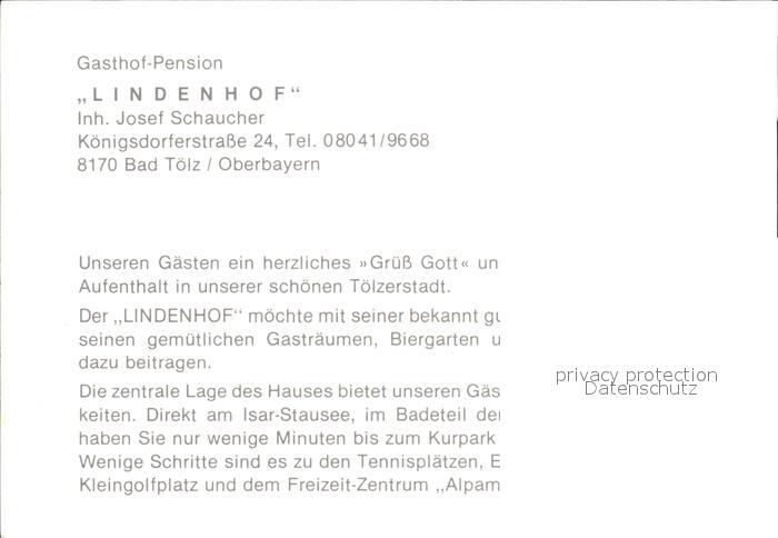 72535410 Bad Toelz Gasthaus Lindenhof postalisch nicht gelaufen Werbekarte (keine Postkarte) Erhaltung siehe scans [LiesaD40 kt120box] KatCode: 11110009173112