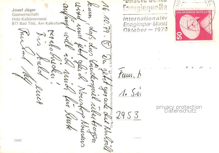 73719407 alte Postkarte Bad Toelz Gaststaette Jaegerwirt Ortszentrum Holz-Kalkbrennerei postalisch gelaufen Erhaltung siehe scans [FriedD77] KatCode: 11110009173112