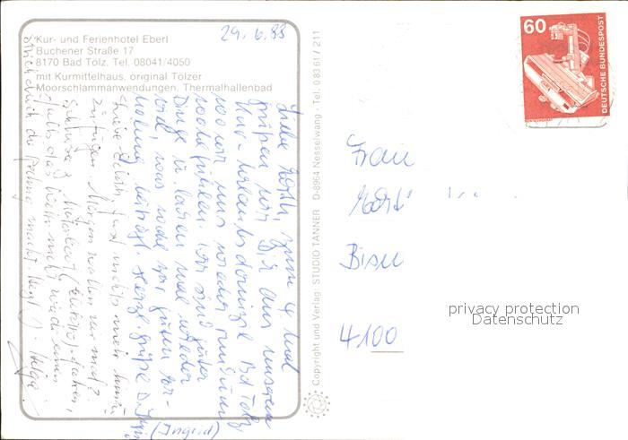 72333925 alte Postkarte Bad Toelz Hotel Eberl postalisch gelaufen Erhaltung siehe scans KatCode: 11110009173112