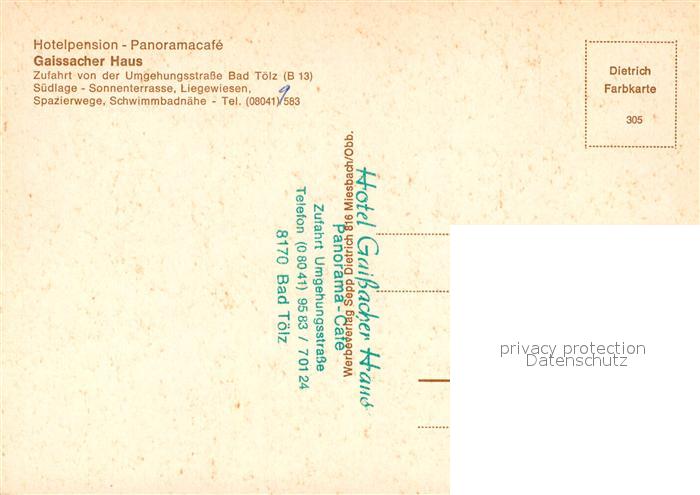 73066716 Bad Toelz Hotel Gaissacher Haus Terrasse postalisch nicht gelaufen Erhaltung siehe scans [WerneD78] KatCode: 11110009173112