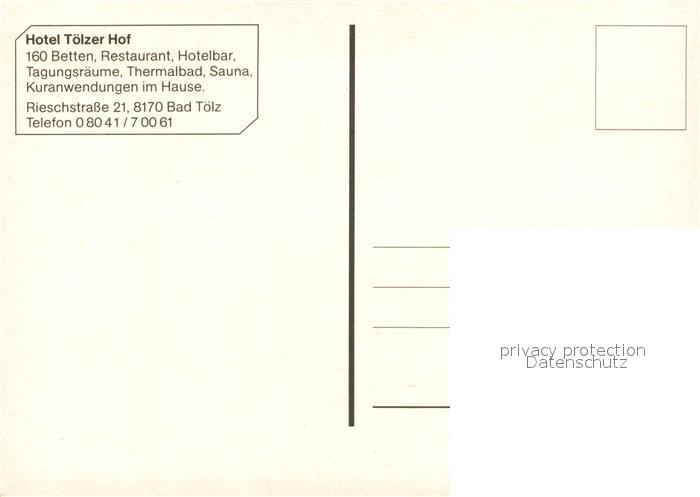 73119776 Bad Toelz Hotel Toelzer Hof postalisch nicht gelaufen Erhaltung siehe scans [LiesaD40] KatCode: 11110009173112