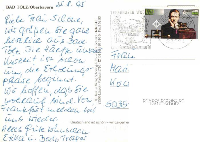 72721025 alte Postkarte Bad Toelz Innenstadt Denkmal Isar Bruecke postalisch gelaufen Erhaltung siehe scans [FriedD77] KatCode: 11110009173112