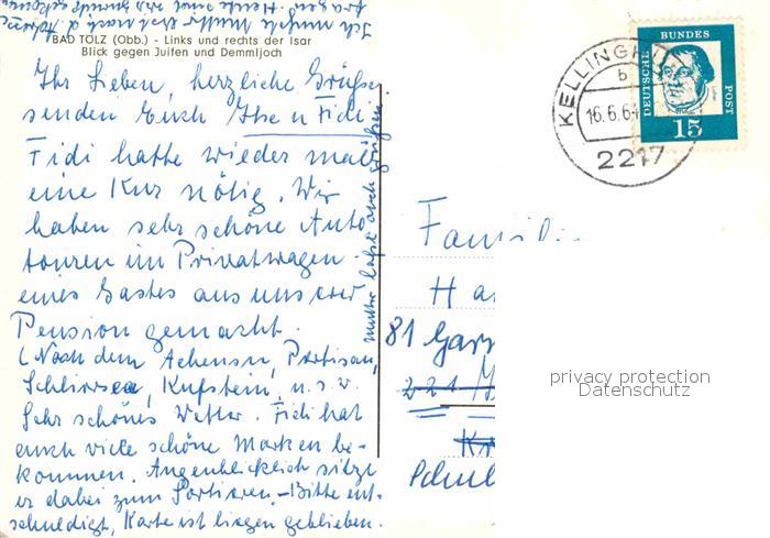 72771222 alte Postkarte Bad Toelz Isar mit Juifen und Demmljoch postalisch gelaufen Erhaltung siehe scans [WerneD78] KatCode: 11110009173112