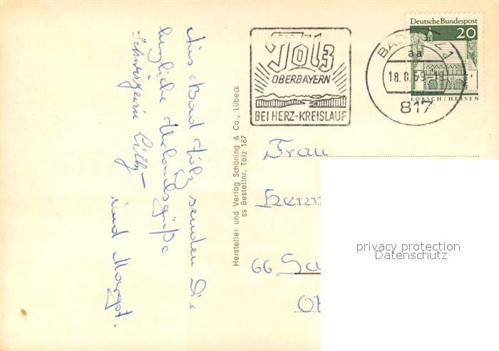 73045605 alte Postkarte Bad Toelz Isarbruecke Marktstrasse Stausee Kurhaus Kalvarienberg Trinkhalle postalisch gelaufen Erhaltung siehe scans [KathaD81] KatCode: 11110009173112