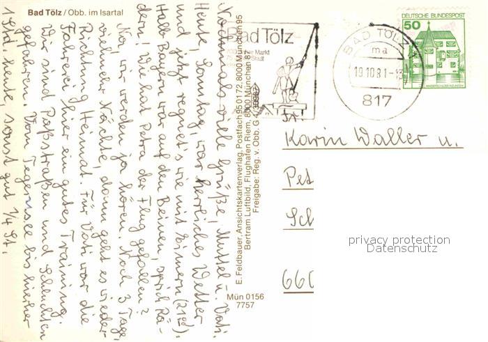 72798823 alte Postkarte Bad Toelz Isartal Alpenpanorama Fliegeraufnahme postalisch gelaufen Erhaltung siehe scans [FriedD77] KatCode: 11110009173112