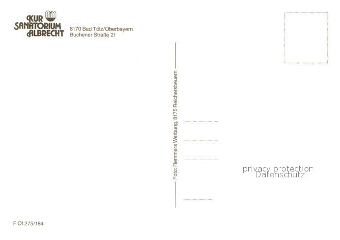 73837323 Bad Toelz Kur Sanatorium Albrecht postalisch nicht gelaufen Erhaltung siehe scans [WerneD78] KatCode: 11110009173112